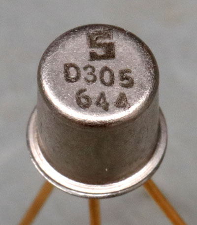 Der Signetics SD305 ist wie der SD304 ein DMOS-Transistor mit zwei Gate-Elektroden. Er ist für Anwendungen im Bereich von 200MHz spezifiziert und damit etwas langsamer als der SD304. Die maximale Sperrspannung beträgt 20V. Der Drainstrom darf auf bis zu 150mA ansteigen. Das Datenblatt führt neben dem SD305 auch den SD306. Die Spezifikationen der Bausteine zeigen, dass es sich nicht lediglich um eine Sortierung handelt. Der SD306 besitzt eine geringere Stromtragfähigkeit, geringere parasitäre Kapazitäten, eine geringere Steilheit und einen höheren Kanalwiderstand. Alles spricht dafür, dass sich im SD306 ein deutlich kleinerer Transistor befindet.