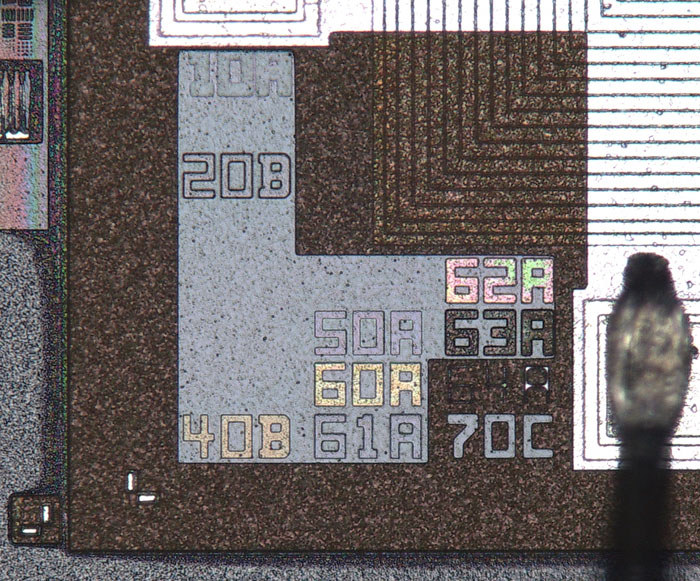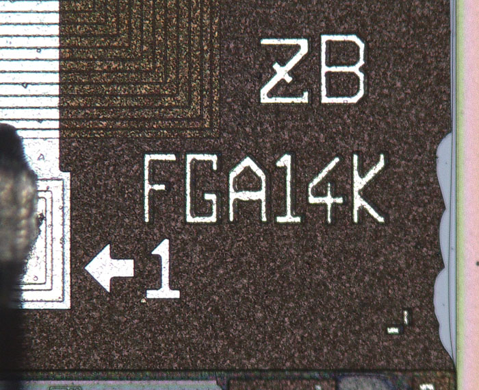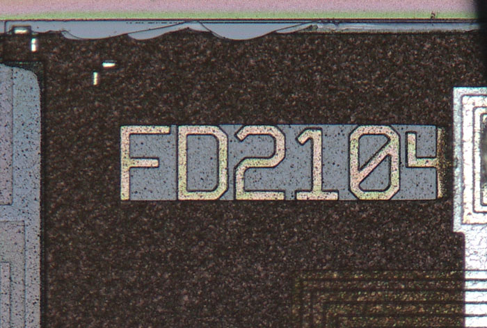 Wie beim FD1902 kann man auch hier keine Details der integrierten Schaltung erkennen. Die Strukturen in der Oberfläche zeigen lediglich, dass es sich um eine andere Schaltung handelt.